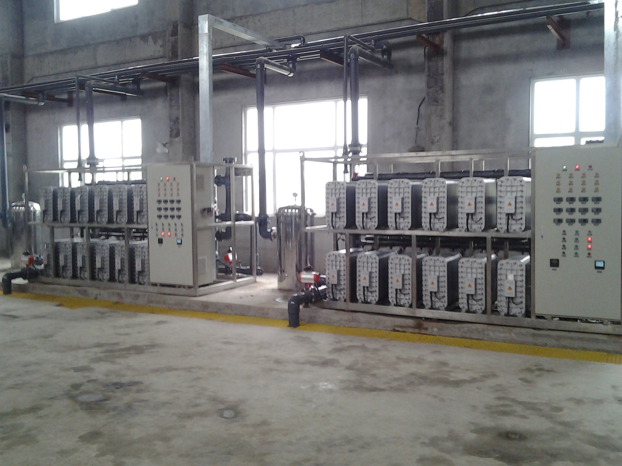 電去離子(Electrodeionization,簡稱EDI),或稱連續(xù)電除鹽,是當(dāng)今較先進(jìn)的純水、高純水生產(chǎn)技術(shù),它巧妙地將電滲析和離子交換技術(shù)相結(jié)合,利用離子交換膜的選擇透過性和樹脂的高傳導(dǎo)能力,在模塊兩端正負(fù)電極形成的直流電場作用下,快速將淡水室中的電解質(zhì)離子定向遷移至濃水室,從而得到純水和高純水。它可以替代傳統(tǒng)的離子交換樹脂,利用水解離產(chǎn)生的H+和0H-來自動再生樹脂,無需酸堿,因此較大限度地降低了設(shè)備的運(yùn)行費(fèi)用,減少了污染,可實(shí)現(xiàn)連續(xù)運(yùn)行,生產(chǎn)出電阻率高達(dá)16-18MΩ·cm的超純水。